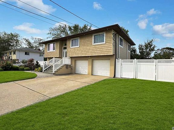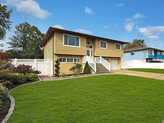 Mint Condition 4 Bedroom, 1/2 Bath High Ranch situated on a 75x100 lot. This home is absolutely perfect for extended family. Possible M/D with proper permits. The house features a beautiful new custom designed eat-in kitchen and SS appliances, large bedrooms, beautiful Baths, great family rooms, office and a gorgeous backyard with 5 zone inground sprinklers and PVC fence. Perfect for entertaining!! Wood floors throughout 2nd floor and ductless CAC Units. Also new roof, windows, insulation, stucco, siding, electric and Solar Panels. Located 5 min from Train station. Blocks away from great restaurants, shopping, schools and transportation. Tax W/O STAR $10,483 + Village$1003. Lindenhurst Schools.