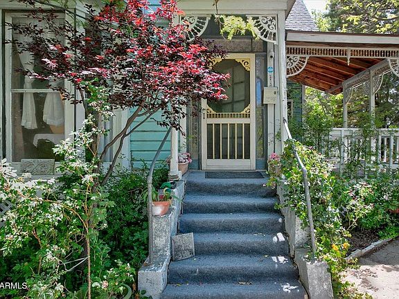 Built in 1877, the Otis house is a treasured example of everything historic & charming about Prescott. This lovely, Victorian ''lady'' is one of the oldest homes in Prescott & presents like a true period piece complete w/sitting room, parlor, staircase up to bedrooms, inviting front porch, gingerbread accents, & original windows. Additions made over the years incl. back kitchen, main floor bath w/laundry, & an attached 2 bed/1 bath apt. w/separate access and garage. There's magical outdoor space for secret gardens & just a few minute walk to downtown. Be gentle as this home is original & priced to reflect the love & labor that she is deserving of. Absolutely no repairs or credits will be entertained. This is the perfect opportunity to invest in a historical, downtown Prescott home.