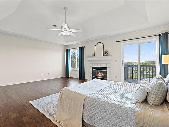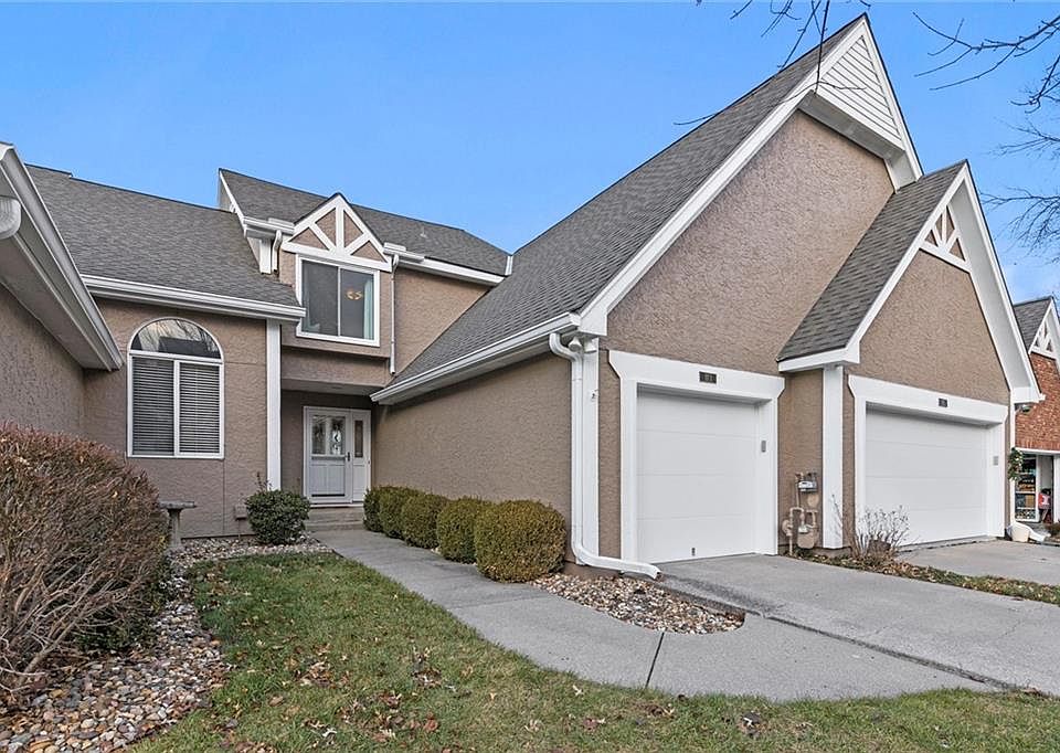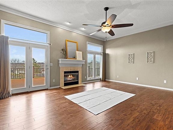 Primary suite with its own martini deck AND fireplace? Check. Chef's kitchen open to the generous living and dining areas? Check! New roof and exterior paint? Check! Walkout basement and TONS of natural light on every level? Check! Make the popular Claymont Pointe Community yours in this stunning, maintenance-free townhome. As you enter, you will be drawn to the open main-level living space with extra-large windows framing the working fireplace. The living room boasts soaring 10-foot ceilings with crown molding as well as beautiful eucalyptus flooring. Glass doors open to a spacious composite deck overlooking lush greenspace, the community pool and a tranquil pond. The well-appointed kitchen features granite countertops, stainless-steel appliances, Genie pull-out shelves and a walk-in pantry. Convenient half-bath, laundry area and garage with epoxy-finished flooring are just off the kitchen. Upstairs, escape to your private sanctuary in the spacious primary suite with a charming martini deck offering views of the pool, a cozy fireplace, vaulted ceilings and large windows which let in tons of natural light. The ensuite bathroom offers separate shower/sink areas and is complimented by a generous walk-in closet and a soaking tub. An additional bedroom on this level includes its own walk-in closet and ensuite bathroom. The walk-out lower level offers yet another bright, open living space ideal for relaxing and entertaining, complete with a wet bar and full kitchenette! The non-conforming third bedroom on this level features a walk-in closet, and be sure not to miss the third full bathroom, perfect for guests or basement social events. Enjoy easy access to the airport and downtown Kansas City. Center unit=low utilities! The HOA covers trash, recycling, snow removal, exterior maintenance, roof and driveway replacement, landscaping, and exterior home insurance.