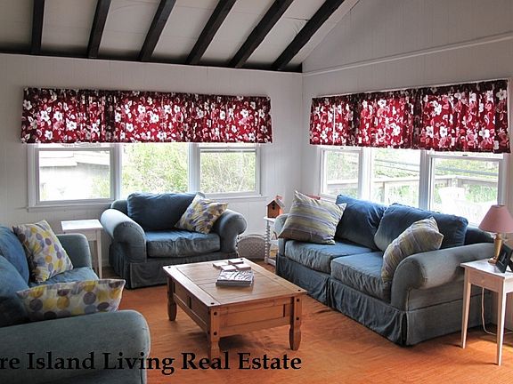 This full two story beach house in the charming Village of Saltaire on Fire Island is offered for sale at $800,000. With four bedrooms and two baths, a deck and a screened in porch overlooking the water, this house is move in ready. The main living areas are on the upper level. Large generous living/kitchen and dining with vaulted ceilings offer open concept living. Hard wood floors throughout. Also on the upper level, a master bedroom and bath. On the entry level another generous living space, three bedrooms and another full bath. Conveniently located in the heart of the Village of Saltaire.