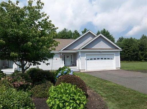 Wow!! You can make this your home for one level living. Spacious open concept living area with upgraded cabinets, hard wood floor and a gas fireplace in the living room. There is a slider to the back deck where you have privacy with the woods behind you. Master suite has a big walk-in closet and its own bath, the other bedroom is a good size with a big closet and hallway bath. Recessed lighting in the living area, a finished room in the basement, attached two car garage. Live Stress Free Here and watch the sun set!!