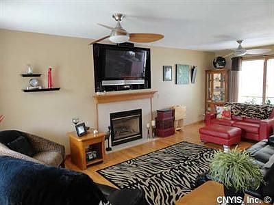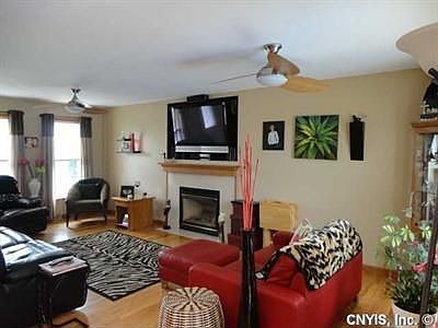 WOW! Do nothing but move right in!!! Loads of perks including LOW utilities, 3 bay heated garage with 5 car wide driveway, gorgeous landscaping, updated kitchen, 2nd floor laundry and master with BIG walk-in closet! HUGE, inviting yard has patio and sparkling in ground pool with brand new liner and cover. Loads of storage in full, walk-out basement and additional full area over garage. Open floor plan has gleaming hardwoods on the entire first level that current owners added. 50" TV over gas fireplace stays! Located at end of road, no thru traffic. Central air here too. Don't wait, call now!