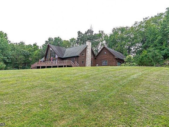 Looking for a home in the country? You just found it! This custom made log cabin sits on 12.59 acres in beautiful Hope Township just minutes from Route 80. The living room has a full wall of windows and overlooks stunning mountain views. Just outside the LR is a massive deck where you can sit and enjoy those same views! The gourmet kitchen has hand crafted cabinets, granite countertops, gas stove, and newer SS refrigerator, dishwasher, wall oven and microwave. The fridge in the mud room & W/D in the basement are also new. Family room has a remarkable stone FP. Master BR is on the first level and has a sitting room, ample closet space & high ceilings. Other 3 BR's are a great size. 3 car attached garage. Whole house generator. Seller will sell furniture in the house w/ the exception of wall art.