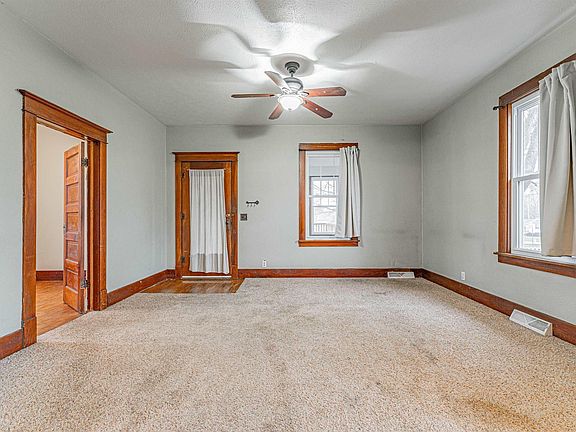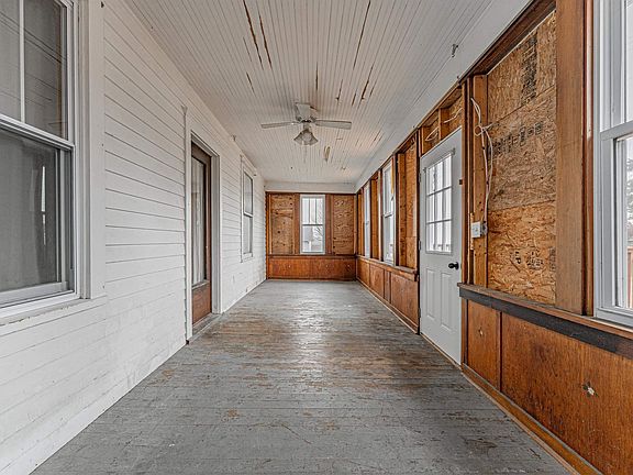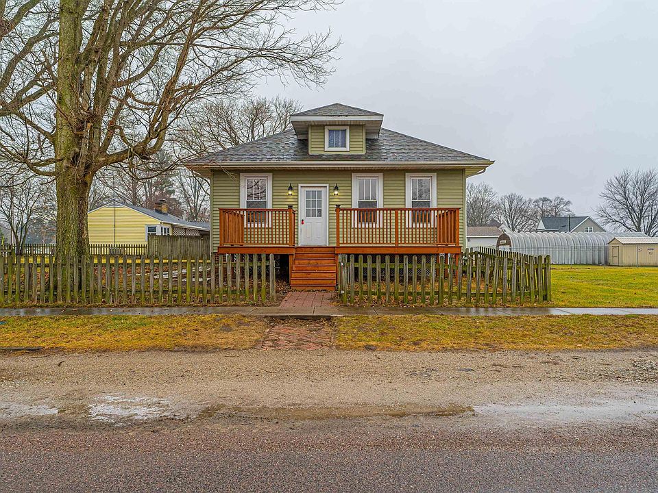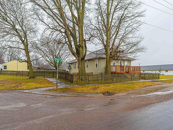 Absolutely adorable two bedroom vinyl sided small town bungalow style home situated on a large 85X147 corner lot complete with a full basement! The interior welcomes you (and yours) home with its inviting 9X27 enclosed front porch (NOT included in total square footage), comfortable front facing living room, 12X15 den/office with hardwood flooring and a neat window seat area, tiled formal dining room, equipped efficient tiled kitchen, two cozy bedrooms, full hall tiled bath, and a nice 9X9 enclosed back porch. Property also features a full open and usable basement, large newer front porch/deck, fenced side yard (other side is wide open), vinyl replacement windows, architectural roof, natural woodwork, and a radon mitigation system. City water/private septic system. Prime small town Logan County living at $85,000?! Yes, you read that right!