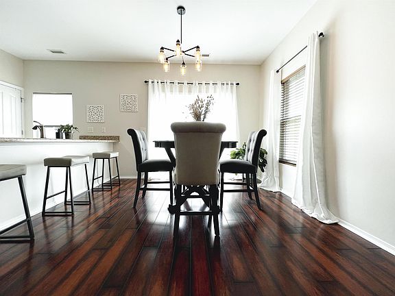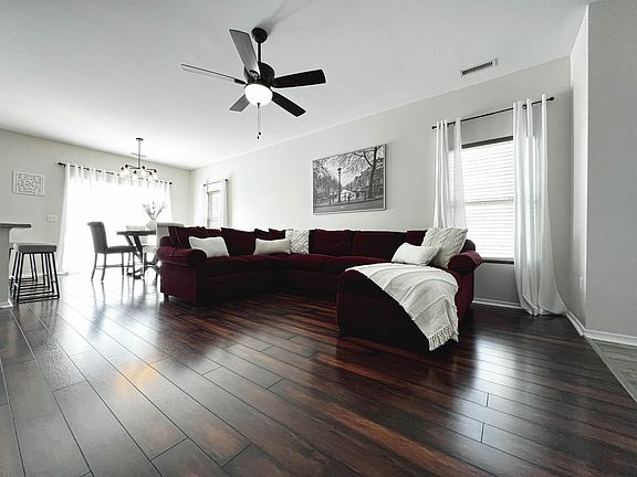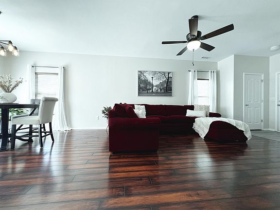 This POOL & tennis community's sidewalk lined streets lead you to this OPEN FLOOR PLAN 3 Bedroom, 2 Bath home! This conveniently located RANCH w/ a 2 Car Garage features lots of updates & upgrades including smooth 9 FOOT CEILINGS, fresh paint & luxury vinyl / laminate plank flooring throughout, furniture style vanities in both baths, 2 inch blinds, NEW water gas heater in 2022, ceiling fans, & much more. The updated kitchen features birch cabinets w/ updated hardware, a feature wall w/ TILE & custom shelving, smooth top range, black stainless steel range hood, pantry & LARGE ISLAND w/ seating for 4-6. The dining room & kitchen are open to the large living room, making this home an entertainer's dream! Plenty of storage, including a LARGE LAUNDRY/mud room conveniently located near the garage. The back patio & open back yard are a blank canvas, ready for your personal touches to make it yours. Enjoy the many open spaces, POOL, tennis courts, PLAYGROUND & sidewalks this community has to offer.