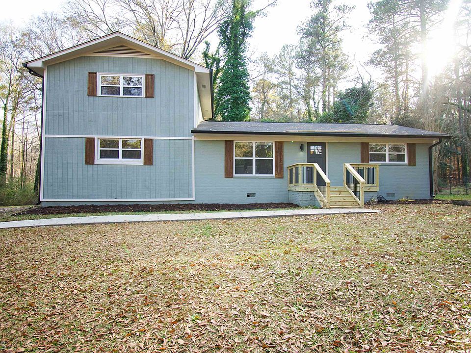 This home will not last long! This Adorable 3 bedroom 2 bath remodeled home, sitting on 1 acre has it all. Beautifully designed home with refinished ORIGINAL hard wood floors throughout. As you enter the home you are welcomed by an open concept floor plan with dining room and a brand new kitchen featuring Quartz countertops, tile backsplash, and stainless steel appliances. The hall leads you to 2 nice sized bedrooms and updated bathroom with tile floors and shower. The sunken den has beamed ceilings and French doors that open out to the circular driveway. The laundry room is just off of den. Upstairs is the beautiful primary bedroom with primary bathroom featuring a double vanity, hexagon floor tile and tiled shower. Outside is a perfect sized deck for Sunday barbecues, and fenced in backyard. Corner lot in desirable neighborhood close to Downtown Newnan and Ashley Park