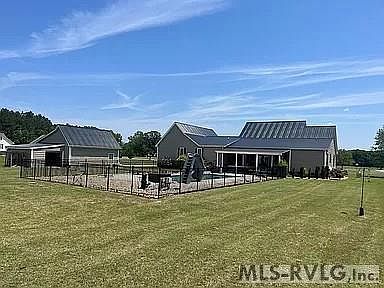 This wonderful home is situated on a large 1.8 Acre lot just outside of the town limits. It features a nice kitchen with lots of cabinet space, work island and beautiful granite countertops. There is also an adjoining breakfast nook and dining room. The primary bedroom has his/hers walk-in closets and a unique sliding barn door leads to the adjoining private bath with a corner whirlpool tub, shower and double vanity with granite top. There are two additional bedrooms that share a full bath, a multi purpose room with adjoining bath, nice laundry room with 1/2 bath and an office. The spacious family room has french doors that open to the covered back porch, patio area and in ground pool. Outside you'll find a double attached garage, double detached garage, paved circular drive, covered front porch and recently replaced metal roof. This home has great indoor & outdoor living space.