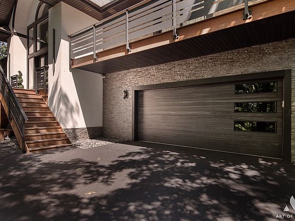 Nestled on a private 1-acre wooded lot, this stunning, recently rehabbed, retreat offers the perfect blend of luxury, privacy, and natural beauty. A long, tree-lined driveway welcomes you to this contemporary home that features a sleek stucco exterior, beautifully updated landscaping, and a modern garage door that sets the tone for the style within. As you step inside this home you are greeted to 20-foot ceilings and oversized windows that make everything feel bright, open, and airy. With 4 spacious bedrooms, 3.5 bathrooms, the layout is ideal for both everyday living and elegant entertaining. The lower level features a second kitchen, a wine cellar, and an additional entertaining space. If you love spending time outside, you'll enjoy the updated backyard with a built-in hot tub, a cozy outdoor fireplace, built-in LED lighting, and multiple balconies. This home is more than just a place to live-it's a private retreat, an entertainer's dream, and a serene escape from everyday.