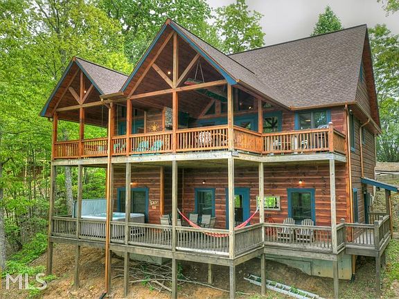 Mountainside retreat... With unbeatable quality and custom style, this stunning 4BR/3BA getaway is the opportunity of a lifetime. This luxurious mountain lodge boasts modern rustic accents, a wall of windows for plenty of natural sunlight, soaring cathedral ceilings, floor-to-ceiling rock fireplace, hardwood floors, granite countertops, stainless-steel appliances; the list goes on. The finished basement offers a spacious den/REC room, wet bar, 1 BR plus a large bunk room and 1 BA. Being sold turn-key with all furnishings included, you will enjoy the high end furniture, pool table, hot tub, custom outdoor swinging bed, custom outdoor table, and much more. Currently on a rental program with unbelievable rental history, this home would make an incredible investment. Enjoy the Hemptown Heights community with all paved access just minutes from downtown Blue Ridge. Don't let this one pass you by!