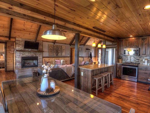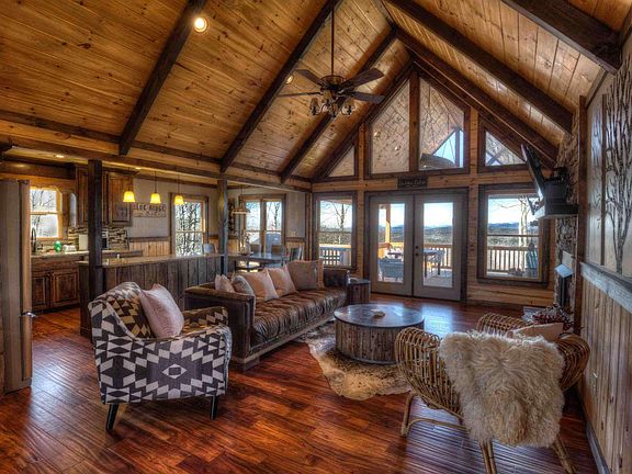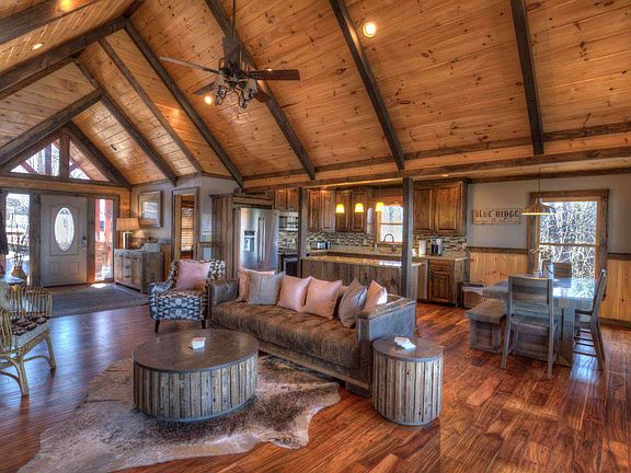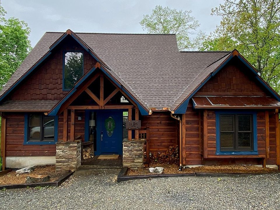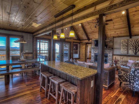 Mountainside retreat... With unbeatable quality and custom style, this stunning 4BR/3BA getaway is the opportunity of a lifetime. This luxurious mountain lodge boasts modern rustic accents, a wall of windows for plenty of natural sunlight, soaring cathedral ceilings, floor-to-ceiling rock fireplace, hardwood floors, granite countertops, stainless-steel appliances; the list goes on. The finished basement offers a spacious den/REC room, wet bar, 1 BR plus a large bunk room and 1 BA. Being sold turn-key with all furnishings included, you will enjoy the high end furniture, pool table, hot tub, custom outdoor swinging bed, custom outdoor table, and much more. Currently on a rental program with unbelievable rental history, this home would make an incredible investment. Enjoy the Hemptown Heights community with all paved access just minutes from downtown Blue Ridge. Don't let this one pass you by!