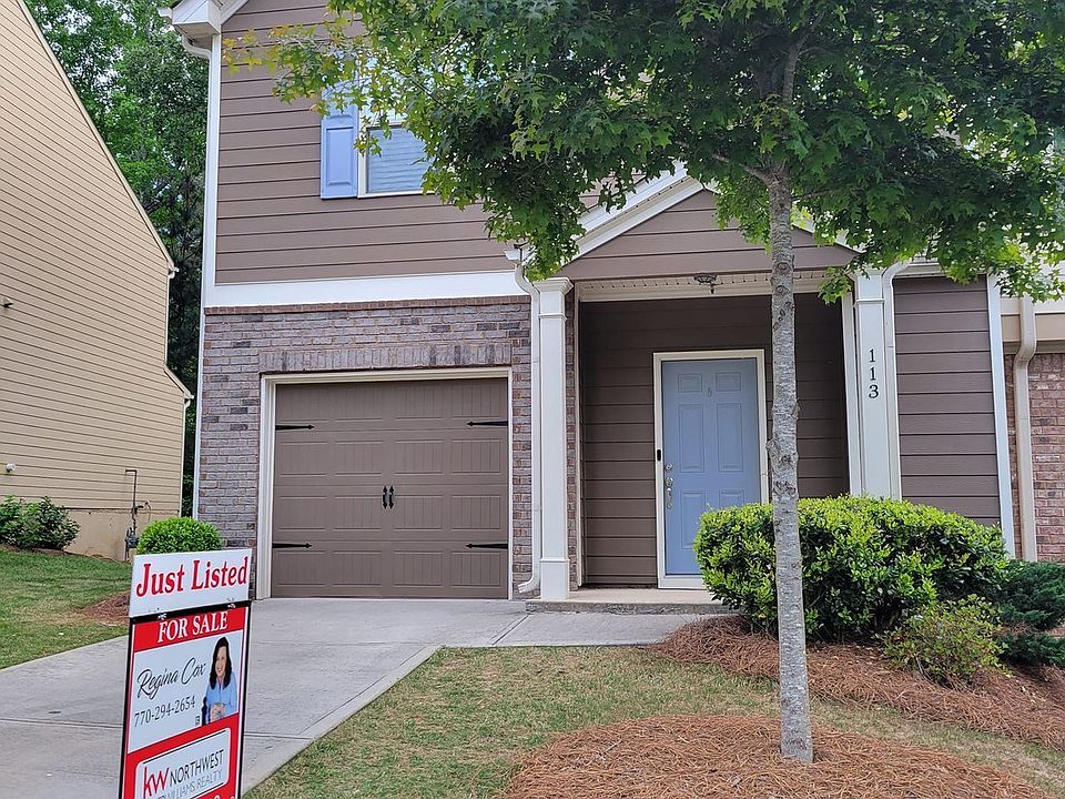 This end-unit townhome is in pristine condition and enjoys a private wooded view in the fabulous neighborhood of Franklin Park at River Green. Open floorplan, stainless appliances, granite countertops, coffered ceiling in the family room, private balcony and custom flooring on the main floor. Upstairs has an oversized owner's suite with huge walk-in closet, two additional bedrooms and large laundry room. River Green amenities include multiple pools, tennis courts, parks, fitness center, and the list goes on! Located minutes from schools, shopping, dining, entertainment, top-notch medical facilities and Lake Allatoona. THIS is the one you have been waiting for - Call Today!