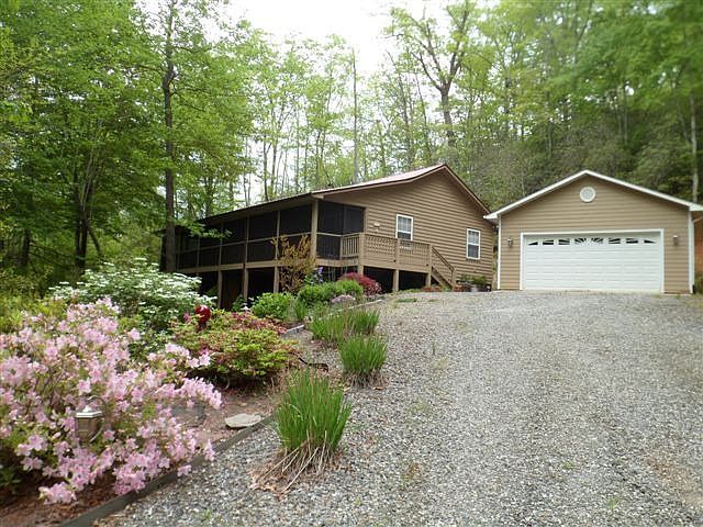 Fantastic cabin with 2 car garage in a lovely wooded setting just minutes to Sylva or Franklin. This gem offers one level living with a floor plan which is very open with elevated ceiling in living room, kitchen and dining areas. Kitchen features stainless appliances including a 5 burner gas range, lots of cabinets and counter space for the family cook/cooks. Bedrooms are a split plan with large primary bedroom ensuite with walk in closet and French doors which open to the porch. The bonus room can be used as an office/nursery/sleeping area. The guest room offers French doors leading to the porch. There is also a dedicated laundry room located by the kitchen. For your outdoor enjoyment retire to the full length screened in deck area for relaxation or an evening sip of something. Want to enjoy the sun?? Yes there is an open deck to soak in some rays. Need extra storage space, the garage will not disappoint. This home is beautiful and move in ready!! Calling for highest and best by 5:00 PM on June 15.