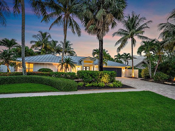 Just bring your bathing suit and toothbrush to this elegantly re-imagined, completely remodeled and furnished coastal inspired beach escape. This homes transformation was focused on opening the space and transforming the home to a elegant beach retreat. The new living area includes a vaulted family room with shiplap, beam ceilings, and board and a batten focal wall . A large designer kitchen with custom micro shaker cabinetry was designed by Zimmermans kitchens. The beautiful, expansive island with luxury appliances and quartz counters makes perfect for entertaining and family gatherings. The Primary suite was redesigned with a larger bathroom and closet area. The spa-like bathroom is an oasis with a luxurious shower, a free-standing soaker tub, upgraded fixtures and vanity. There is an attached toilet room. A junior suite was added with an expanded walk-in closet and cabana bath. The home also has two additional bedrooms sharing a newly renovated bathroom. The true gem of this home is the beautiful and spacious backyard. This outdoor space includes a large updated pool and spa, gas fire pit, gas torches, large covered lanai with tv, expansive patio with landscape lighting, sprinkler system, and lush private tropical landscape.
