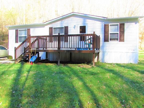 Privately situated on a 1.1 acre lot with a rushing creek meandering across the front of the property, this manufactured home is in excellent condition. Nothing to do but move in and immediately enjoy the quite, peaceful country setting. Large front entrance deck, ideal to enjoy the sounds and views of the creek and surrounding wooded mountains. Large living room. Eat-in kitchen with updated cabinetry and appliances conveying. Laundry room. Split bedroom arrangement with the master bedroom located separately from the other two bedrooms, maximizing privacy. The master bedroom offers a private en suite bath. Beautiful hardwood flooring throughout the home. Central heating and air conditioning. Compare this home and property to any other within this price range. In terms of acreage and condition of the home, this home beats all the competition. An ideal property for singles, starters, retirees or investors seeking quality rental property. All info. taken from Tax Records. Buyer/Buyer's Agent to verify all.