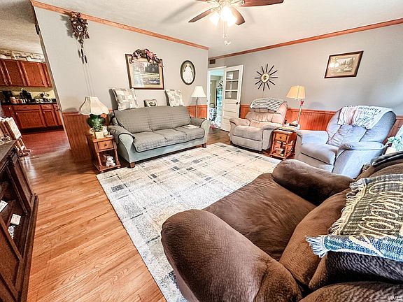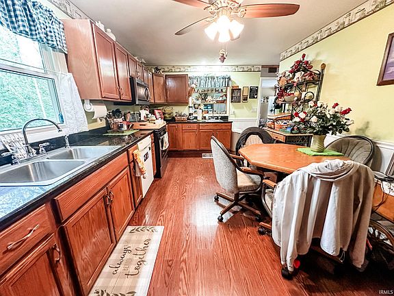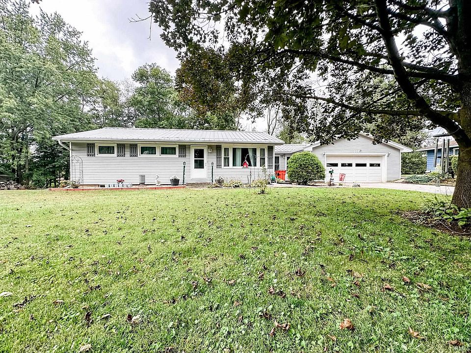 Want to be outside of town but close enough for convenience? This charming 3 bedroom ranch is for you! This home sits on a large lot with a fenced in back yard. The real hardwood floors throughout are in great shape. This home has SO many updates: (2014) New granite countertops, new windows throughout the home, new garage door, water filtration system installed. (2015) New stainless steel appliances. (2016) New siding, new windows in breezeway and sliding door installed, new windows in basement and garage. (2018) Main floor bathroom remodeled. (2021) New flooring in the kitchen, bathroom, and breezeway, new pressure tank for the well. (2023) Deck replaced, new metal roof, basement sealed and sump pump installed, septic tank cleaned and new cover installed. (2024) New gutters with leaf guard installed with lifetime warranty. Furnace an AC serviced yearly.