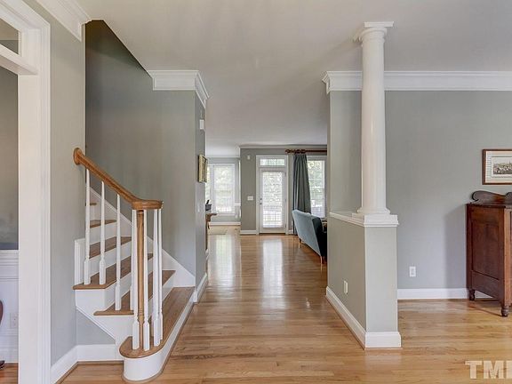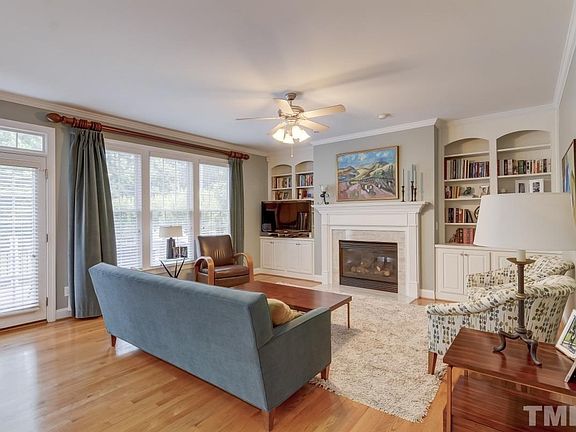 Brick front beauty in highly desirable Cary community loaded w/ updates! New 50 yr roof (2017). New tankless water heater (2017). Fresh paint. New fixtures. Hardwoods thruout most of home. Spacious family rm features built-ins & gas log fp. Bright & open kitchen offers quartzite tops, s/s app-s (gas cooktop) & tile backsplash. Master suite has trey ceiling, WIC, updated marble top dual vanity, frameless shower & w-pool tub. Bonus w/ sep back stairs. Expansive trex deck. Flat, deep b-yard w/ wooded buffer!