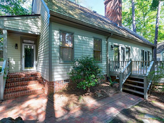 Charming Colonial Style home in WILLIAMSBURG COMMONS. This William Poole design offers a 1st floor Owner's suite with 2 nice size bedrooms upstairs, each with extra storage space. The kitchen was remodeled approx. 5 years ago giving it a nice open feel. The bathrooms are ready for the next owner to add their personal style. Sit on the back deck & enjoy the secluded setting. Private alleyway that accesses the detached single car garage with large walkup storage. Community is adjacent to the walking trails that lead to Koka Booth at Regency. Prime Cary Location with easy access to the highways, close to Medical facilities, restaurants, and shopping. Welcome to your next Home!