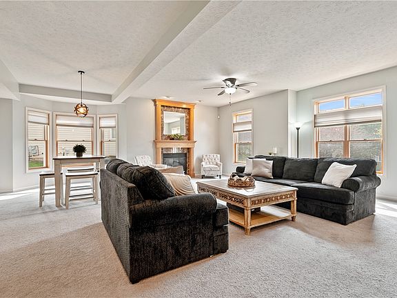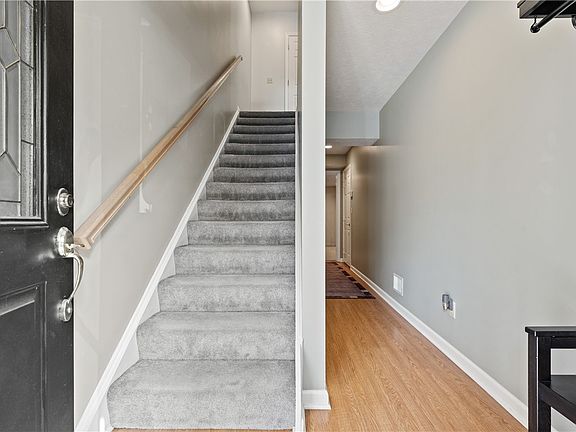 Beautiful end unit townhouse located in the community of Mystic Hills. So much living space! Large family room w/gas fireplace and dining area w/bay window. Spacious kitchen w/white cabinetry, granite countertops and stainless appliances. Formal dining room w/custom lighting. Huge master bedroom w/cathedral ceiling and walk-in closet. Master bath w/two vanities, jacuzzi tub w/tile surround, walk-in shower and tile floors. Spacious two other bedrooms and a full bath on second floor. Finished lower level w/half bath and laundry room. Private 18x12 deck w/tree lined yard. HOA includes clubhouse, pool, fitness room, landscaping and snow removal of common area. Great location. Close to shopping and dining. Short drive to airport and downtown Pittsburgh.