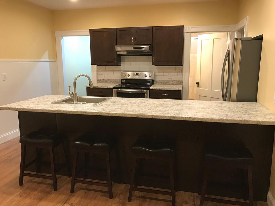 Located just west of the Granite Street Bridge off of South Main St. is this spacious, newly renovated 2nd floor apartment. It has much to offer someone looking for convenient living less than 1 mile from the center of downtown Elm Street. The new heating/central AC system is high efficiency (98.5%), which keeps the gas bills low while it purifies the air from bacteria, viruses and allergens....a whole house filtration system. It has full size washer/dryer in the apartment laundry room with a folding counter. The all new bathroom has an oversize tub, tile and a heater/exhaust fan in the ceiling fixture as well as a vanity dimmer switch and medicine cabinet. The huge, all new kitchen has an exhaust hood, tiled back splash, all stainless steel appliances, dishwasher, large sink, microwave and an ice machine. There is 10FT peninsula counter with 4 bar stools and room for a kitchen table as well. Recessed LED's with task lighting on a dimmer makes it easy to see in this kitchen. The master bedroom has a well lit walk in closet with a full length mirror and a bay window. The rest of the apartment has hardwood floors, ceiling fan, pantry, an extra closet in the living room, front and back mudrooms with covered entry ways, a door bell and motion sensor outdoor security lighting. There is a private covered porch off the kitchen which is carpeted. LED lighting throughout. The apartment is cable ready. Water/sewer and trash included. Electricity/Gas/Cable are extra. No smoking. Small pets negotiable. 1 year lease. References. Please leave a brief introduction. Owner pays for water/sewer and trash. Gas and electric are extra.