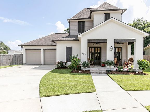 Want a country living feel, minutes from city conveniences? Take a look at this stunning two-story home on a large lot in the highly desirable Couret Farms. From the open-concept kitchen and living space to the large backyard with mature trees, there is plenty of room for the whole family to enjoy. You'll enter the home through french doors off of the quaint front patio. Upon entering, you're greeted by an open living room with wood floors, a gas fireplace, high ceilings, and lots of natural light. From there, you'll enter into the dining room and kitchen which is complete with stainless steel appliances, granite countertops, an oversized island with seating, an abundance of cabinets, and a walk-in pantry. A guest bedroom and the master suite are located downstairs. The master suite feels like a retreat with it's own private porch and side yard making it the perfect place to enjoy your coffee in the morning or gaze at the stars at night. The master bedroom is spacious but cozy, and the master bathroom boasts double sinks, an additional makeup vanity, a large soaker tub, a custom tiled shower, and a walk-in closet conveniently attached to the laundry room. Upstairs you'll find a landing with enough room for a game room, office, craft room, reading nook...the possibilities are endless. Off of the landing you'll find two bedrooms and a bathroom. The exterior of the home is something you won't want to miss. Sitting on one of the largest lots in the subdivision, you're sure to get that "country feel" while sitting on the extended back patio which overlooks the open yard surrounded by trees. Don't miss out on this one of a kind home, and schedule your showing today!