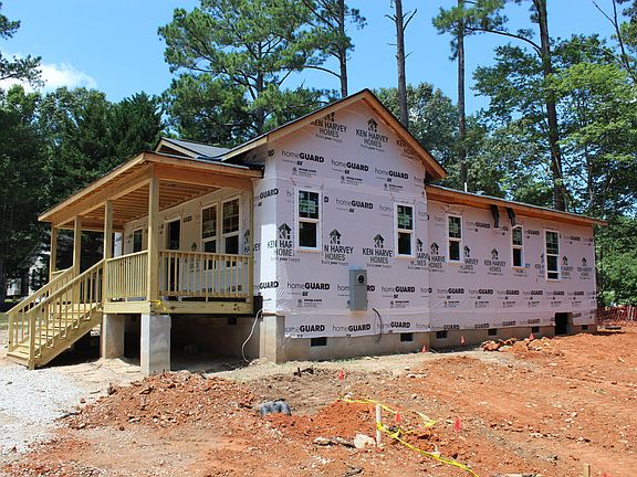 Custom Built RANCH by Ken Harvey Homes! Cottage on a TRIPLE LOT w/Huge Rocking Chair Front Porch! Front Door Opens into Open Concept Dining Room & Family Room! 7'' 'Weathered Barn Oak'' Wide Plank Waterproof/Scratch Resistant LVP Floors Through Main Living! Kitchen: Custom ''Frost'' Painted Cabinets w/Cove Crown Trim, 'Pure White'' Quartz Countertops, ''Ice White'' Gloss Tile Backsplash, Single Bowl Stainless Sink w/Pull Out Sprayer Faucet, Recessed Lights, Stainless Steel Appls Incl Glass Cooktop Range w/Power Boil, Vented Microwave & Dishwasher & Breakfast Bar Opening to the Dining Room! Primary Suite: Offers Vaulted Ceiling, Ceiling Fan & Walk in Closet! Primary Bath: 13x13 White Matte Diagonal Tile Floor, White Painted Vanity w/''Carrara Extra'' Quartz! Side Porch Entry w/Storage Closet!