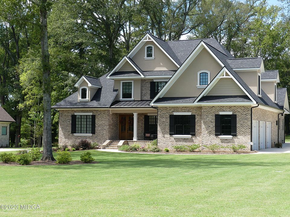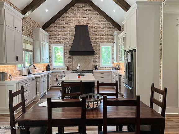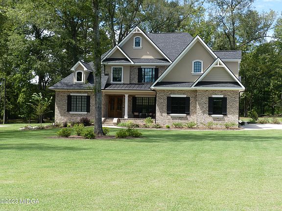 Stunning curb appeal and impeccable attention to architectural details describe this 4 bedroom, 4.5 bath custom built home. Built in 2022, this all brick home features 4 bedrooms, 4.5 baths - master on main and 3 bedrooms, all with ensuite baths, on the 2nd floor. The beamed gourmet kitchen features a Thor gas stove/oven, ice machine, quartz countertops, custom cabinetry, undercounter lighting and brick accented walls. The main floor features light-colored, wide plank hardwood floors. Relax in the spacious and open coffered-ceiling great room while enjoying a view of the enclosed sunroom and private back yard. This home boasts arched beams in the dining room, a private master suite, luxurious master bath with garden tub, oversized shower, double vanities and oversized master closet. The owners have thought of everything, as this home has a tankless water heater, wood burning fireplace in the heated and cooled sunroom, a level lot with sprinkler system, encapsulated crawl space, oversized 3 car garage and an extra parking pad. Peninsula is a gated community that provides privacy and security. This is the only development in Georgia with active eagles' nests and the only gated lakefront community on Lake Tobesofkee. Owners have access to the lake through Common areas 1 & 2. This is a fantastic home that you will love to call your own. Call today for an appointment to view.