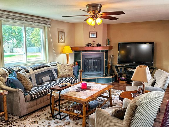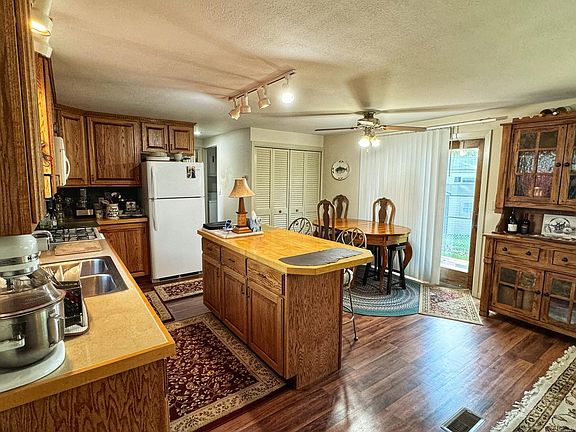 Very well maintained and cared for mobile home in Lincoln with a fully fenced in back yard with two sheds. Freshly painted front porch and new exterior door leading to the back yard. The galley kitchen has a marble back splash with beautiful hardwood counter tops. Primary suite has a custom tiled shower with south facing windows. The second bedroom is also connected to the second bathroom with another custom tiled shower. Home also features a third bedroom with laundry just off the primary suite. Spacious living room with gas burning fire place with beautiful tile work.