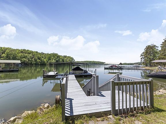 Great "enhanced" mobile home. The living area is very open & spacious - wall of windows (newer house windows) on the lakeside give you an amazing lake view. Lakeside deck is generous in size - lake view can be enjoyed anytime of year. Updated kitchen includes refrigerator, electric Jenn Aire stove, Maytag wall oven, dishwasher & trash compactor. Pull down attic storage plus single car/boat garage with front & rear doors. Also included are the 2 extra storage buildings. Walk to 2-slip covered dock is gentle. Dock has NEW METAL ROOF!!