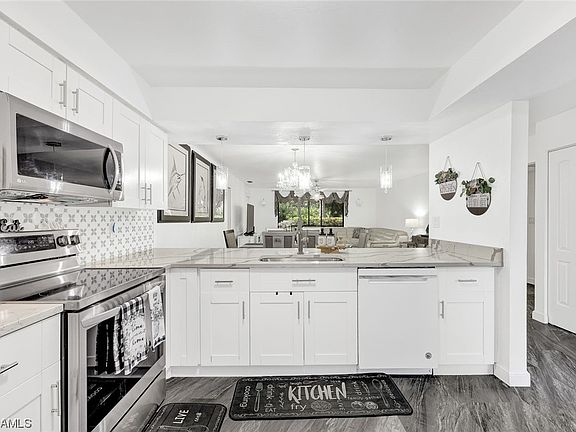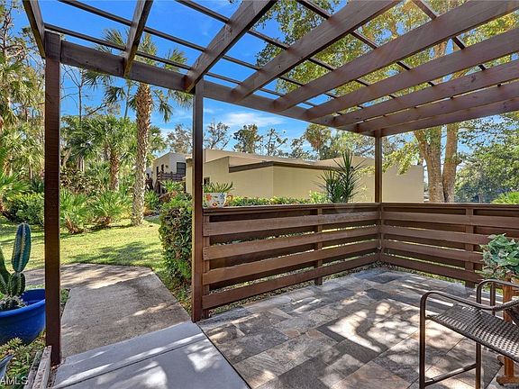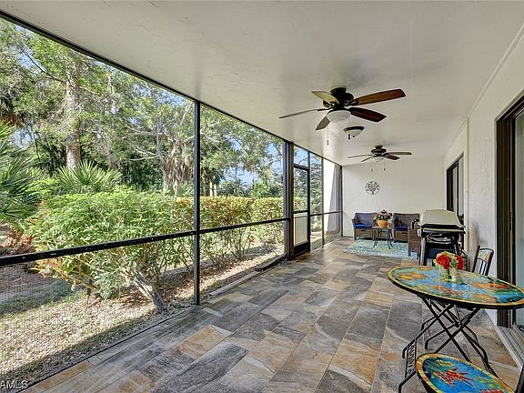 Ultra PRIME LOCATION and VALUE! This nicely updated, END UNIT condo with no one above has a quiet sense, nestled in the midst of the natural beauty that surrounds it while remaining near all of the amenities you desire. Walk to BELL TOWER shops, restaurants, theaters, grocery stores, and more…Travel with ease to the airport and enjoy visiting our pristine Gulf beaches! Community pool and hot tub steps from your front door. The spacious floor plan features 3 bedrooms, 2 bathrooms, a huge covered back lanai, and charming front patio with trellis. One covered parking and one assigned parking plus plenty of visitor spaces available. NEW ROOF coming soon...Notable upgrades include - 2023 state of the art LG Refrigerator, Oven & Microwave, beautiful Quartz and Granite countertops, Shaker Style Cabinetry, large format Vinyl Flooring, Deep Tub in guest bathroom, luxury Shower Tile, sliding Glass Shower Door, 2021 Front Load Washer/Dryer and Water Heater, 2023 Electric Panel, 2018 A/C with recent pro service and new shut off switch. HOA dues include lawn maintenance, cable, wifi, water & sewer as well! Click on "virtual tour" to see a 3D walkthrough & listing video!