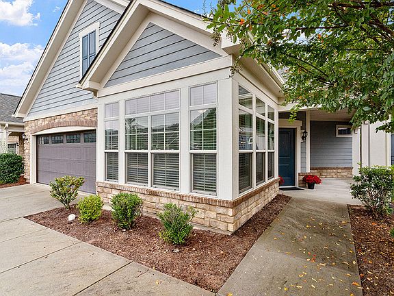 Move-in condition with quick closing available on this beautiful one-story home ideally located between Chapel Hill/Durham in a 55+ active adult community. The open and expansive floor plan allows for maximum use of the interior space while allowing easy flow to a large private courtyard. Living room with gas fireplace * kitchen with gorgeous quartz counters, s.s. appliances, large walk-in pantry, center island, 2 skylights, pull-out sliders, formal dining area *Enjoy the light-filled office/or den with walls of windows *Primary bedroom with lovely sitting area plus an exceptional private bath featuring dual vanity, tiled zero-entry large shower. Comfortable guest bedroom with bath. Over-sized 2 1/2 car garage for all your storage needs. Enjoy community amenities at the clubhouse & pool. HOA covers many maintenance costs = savings for you! These homes rarely become available, NOW is your opportunity.