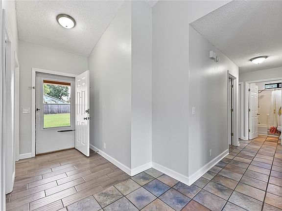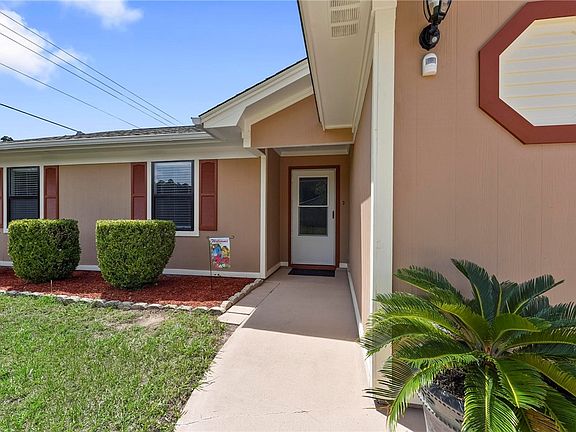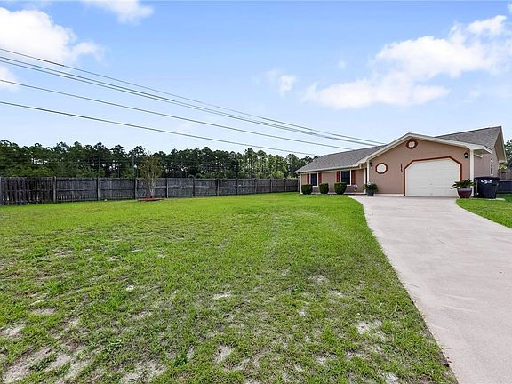 It's not a flip- it's an actual home that has love and memories baked into the walls of this pristine 3 bedroom 2 bath home. It's not a designer home-the tile in the living room, kitchen and dining room was chosen by the homeowner and her family spent days finding the perfect color walls and accent tiles, new carpet to coordinate and tie it all together. They replaced original baseboards, switches and fixtures--wide baseboards, white rocker switches, modern fixtures. The fenced back yard has a side double gate and a gate strategically placed for easy access to the store right behind the house. Everything done here was a labor of love and now it will be to your benefit! The exterior has been freshly painted, all the window panes that needed to be were replaced. The architectural shingle roof is just 6 years old and the AC unit was replaced in 2022. The automatic garage is oversized with workspace and epoxy floor. The new carpet in the bedrooms is better than builder's grade. Even the kitchen cabinets and the ceilings are all freshly painted. Located at the end of the culdesac with a sizable front and back yard in one of the most convenient neighborhoods to NSB Kings Bay! Easy to show-call today!