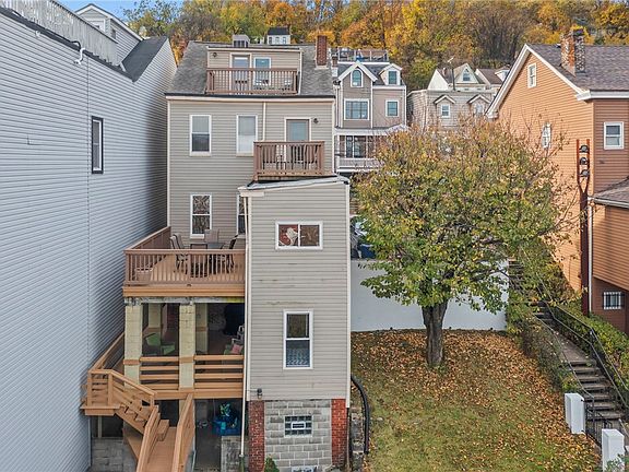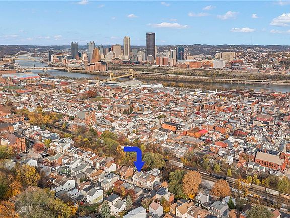 AMAZING CITY VIEWS and a gorgeous low maintenance yard w/ lush landscaping*The details start at the custom STAINED GLASS door & carry into the open living/dining area featuring 2 FIREPLACES (1 gas logs), exposed BRICK, decorative ARCHES & ORIGINAL STAIRCASE*Designed to maximize the skyline, the maple kitchen has the best views for doing dishes + stainless appliances, gas stove, pantry, new DW and access to deck*1st floor powder room*The 2nd floor has 2 large bedrooms (1 w/ private deck) and full bath w/ jet tub and a linen closet*A charming stairwell leads to 3RD FLOOR MASTER SUITE w/ reading nook, full bath and deck*Head down to the lower level and former American Legion Post: it has a separate entry, original TIN ceilings, a BAR, full bath & BR4- a great party room or GUEST SUITE*SUB CELLAR offers hidden storage*NEW roof ('17) & furnace ('23)*Includes 2 years of PARKING: 1 off street & 1 garage (w/remote) in lot across St*PghCityViews.com