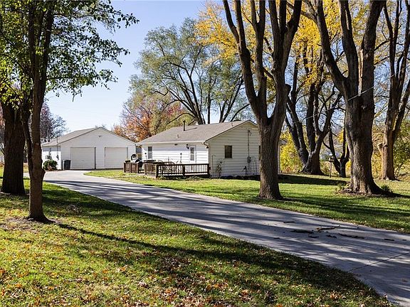 Welcome to Farley, Missouri with it's small town country atmosphere! This tidy Ranch Style home is conveniently located close to Leavenworth, Kansas and on the Missouri side close to Weston, Platte City, and Parkville. The property has such a peaceful setting with a beautiful large treed yard, with wildlife sightings and beautiful viewings of spectacular sunsets. Great features include 3 garage spaces and a newer paved driveway. The 2 car detached garage/workshop is heated and cooled with built in shelving. The house has a one car garage in the basement and the basement is partially finished with an egress window installed. The roof is 3 years young and has gutter covers. There is a 4 year young electric heat pump furnace and ac with gas backup if needed during the cold winters. Living room and bedrooms have wood floors. House is ready for someone to move in and make it their home!!