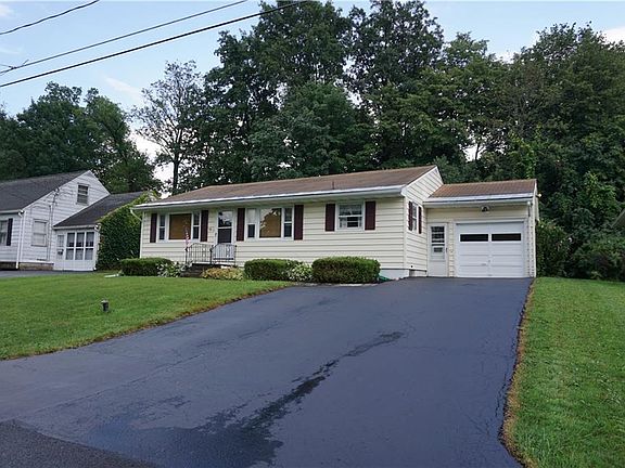 Move-in condition ranch in the sought after Chestnut Hill area of Liverpool. Close to NYS Thruway Route 81 and Destiny USA Mall. Three+ bedrooms, 1-1/2 bath, fenced-in yard perfect for entertaining, formal dining and open living area. 16X15 enclosed room/porch off the back of the home leads to the deck and is being used as office or could be 4ith bedroom. Large deck opens to private back yard. Partially finished basement with 1/2 bath and bar area and refrigerator. Vinyl siding and aluminum trim. Refinished hardwoods and new interior paint. All appliances stay.