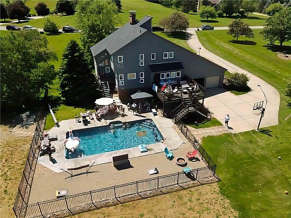 Custom built, quality contemporary home. This stunning home sits on 2+ acres of flat land and has a heated salt water pool (2020), spacious deck (2016), fire pit and so much more! This one-of-a kind retreat offers everything you have ever wished for. There are loads of unique features. Covered front entry, abundant natural lighting includes 96 windows in all (replaced from 2017-2019), updated roof (2018), complete renovation in 2016 updated all baths, all flooring on main level and second floor, new stainless appliances in the kitchen, new water heater, light fixtures & ceiling fans and new railing in the loft. There are 3 log burning fireplaces in living room, loft & game room. The basement was finished in 2021 and boasts a over 1300 sq. ft. space for a guest, ideal living quarters, a full bath, LVT flooring, game room, plus an abundance of storage. Generously sized 2 car garage plus 3 concrete parking spaces on side of driveway (30x18). Freshly painted exterior of home (Summer 2024).