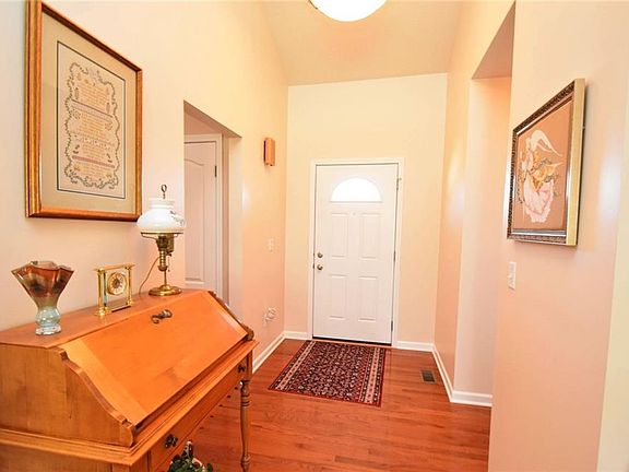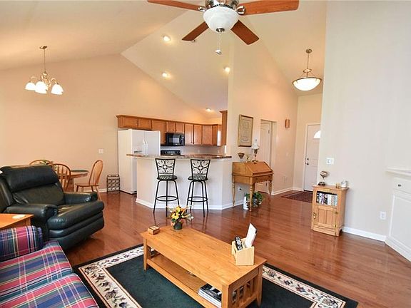 3-bedroom patio ranch, 2 full baths, fully applianced oak kitchen with snack bar, hardwood floors, cathedral ceilings, gas fireplace, 16' X 13' four season Florida room, 1st floor laundry, built in 2008, private lot! New driveway 2014, new water heater 2018, duct work cleaned in 2015. Show & Sell!! Pristine move in condition! (HOA Fee goes towards maintenance of ponds and entryway)