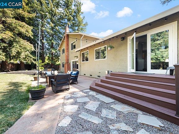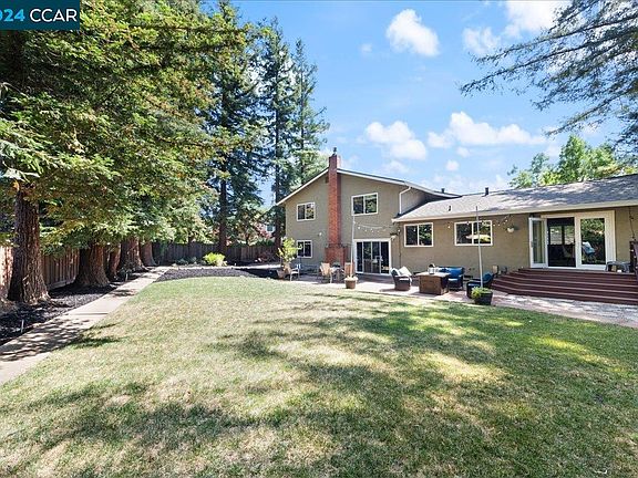 In the heart of Twin Creeks, on the end of a cul-de-sac, two blocks from the cabana clubhouse & pool sits the Posada Court oasis on just under a quarter acre of a flat lot. This tri-level home hosts generously sized bedrooms, with a newer carpet. There is one full bedroom and bathroom on ground level. All bathrooms are updated, new showers, new tubs, new vanities, tastefully done. The updated kitchen opens up to a dining area with French doors opening to the backyard deck. The Kitchen is remodeled with quartz counter tops, gas range, all new stainless appliances, eat-in kitchen counters, and a generous corner pantry. Newer LVP flooring on mid-level is both beautiful and durable. The family room slider opens up to backyard patio and expansive lawn, surrounded in majestic redwoods. A custom waterfall fountain creates a relaxing park like experience. Posada Court is a half mile walk to Bollinger Elementary, a short roll down the hill to 680, minutes to City Center, Bollinger Memorial Park, and convenient to Las Trampas and Bishop Ranch East Bay Region Park hiking areas. This Twin Creek family home has everything.