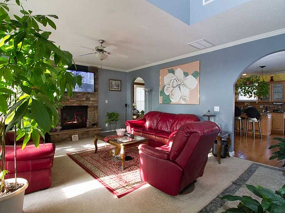Beautiful two story home with 2577 sq ft., 4 Bedroom 2.5 Baths, 2 car garage, with detached carport for 2 more cars. Two story foyer, Fireplace in Living room with Gas Logs. Trey ceiling in Formal Dining Room. Kitchen and bathrooms have granite counter tops. Cement Patio with retractable awning to be able to get out of the sun. Also outbuilding to stay with home. Home has Surround Sound Wiring also already in place. Just installed new HVAC system in August. New carpet in master bedroom, living room and staircase. This home is in immaculate condition, a must see!! Please allow couple of hours notice before showing.