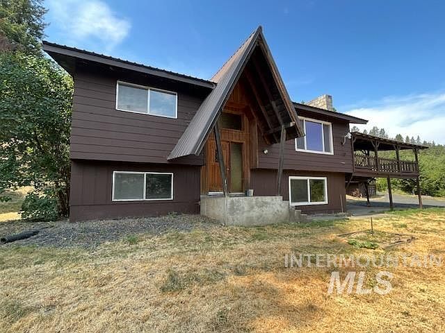 Rare acreage that's close to town with city services and a great view and no HOA's or CCR's. You can bring your livestock, horses and chickens. Elevation is approx. 1600 ft that is perfect for the 2 large fenced garden beds. Cherry, apple, apricot and pear trees are fruit producing. Large covered deck approx. 27x23 ft.perfect for entertaining. Wood stove on each floor of the home. Some areas already fenced with small shelters for animals. Shop with woodstove, insulated and electricity, wood shed that holds approx. 8 cords of wood, walk in cooler, RV parking, chicken coop, ATV or lawnmower space and loft storage and storage shed with shelves. Sold as-is, passed VA inspection 1 year ago. Chimney was inspected and cleaned in February. Carpets were just professionally cleaned. Deer and turkey frequent the property.