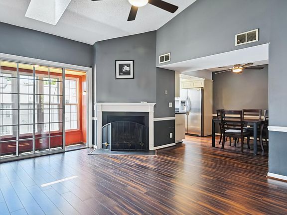 Top Floor Unit with 2 Bedrooms and 2 Full Baths! Enjoy the sun filled rooms with cathedral ceilings. Wood Laminate Flooring and Wood Burning Fireplace in the living room! Updated Kitchen with Stainless Steel appliances and Granite Counter Tops. Sunroom off the living room. Convenient to all Leesburg has to offer! Community Pool, Tennis Court and Tot Lot! Great home or investment! Ceiling Fan in Living Room is "As IS" * TV's and Mounts are Included. Dining Room Table and Chairs, Primary Bedroom Queen Bed Conveys.