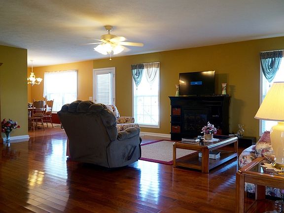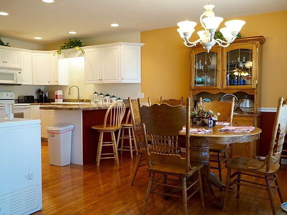 Beautiful open great room with hardwood floors that extend into the dining area that connects to the kitchen. Also off the dining area is the back deck that views an open field, a level back yard, perfect for a vegetable garden and an out door storage building. The split bedroom plan offers privacy for the master bedroom that is roomy enough for a king size bed, walk-in closet and a full master bath. All this is on one level and has a double car garage.