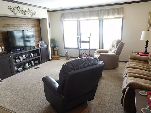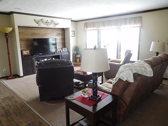 IMMACULATE CONDITION! This 3BR/2BA MH has everything you need. Spacious great room w/built in entertainment center opens to eat-in kitchen featuring brick backsplash, center island, all appliances remaining, glass sliding doors leading to a large retractable awning covered rear deck, sliding barn door separates large laundry just off kitchen w/upper & lower cabinetry & washer/dryer. Master bath features large soaking tub, extra large tiled shower, dbl vanity w/make-up area & lots of storage.