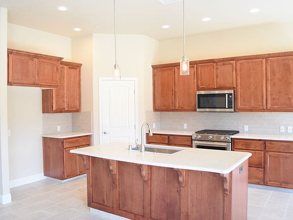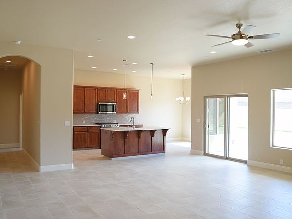 This brand new 2015 sq ft home by Aspen II Homes Inc. has 3 bedrooms, an option room, 2 full bathrooms and a 3 car garage. The amenities include quartz counter tops in the kitchen and bathrooms. Tile flooring in the entry, great room, kitchen , dining area, bathrooms, and laundry room. Towering 10 ft ceilings throughout the home. Stainless Steel KitchenAid appliances. Carpet and ceiling fans add comfort to all bedrooms. Split floor plan design has separate master suite featuring full bath with double vanity, 5 ft soaking tub and 5 ft shower with tile surround and fiberglass pan, walk-in closet and privacy closet. Front option room has potential to be a 4th bedroom, a partially open den/office or open formal dining area. Indoor laundry set up for both natural gas and electric dryers. 3 Car insulated garage with an insulated garage door and opener. R-38 insulation in the attic and R-19 in the walls. Ground mounted AC unit Seer 14. Natural gas tankless water heater. Energy saving windows and LED lighting. Ceiling sprinklers for fire protection. A fully trusted covered patio helps to keep it cool. Comes with the HBW 2-10 home warranty. Inquire today.