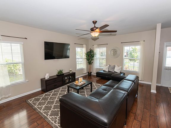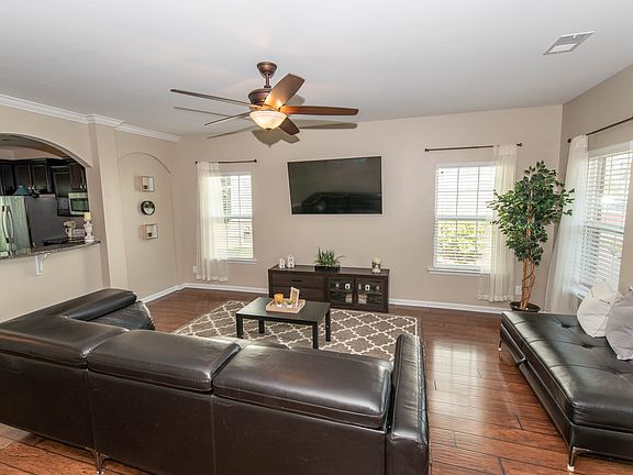 Immaculate home with a perfectly manicured front yard located in the highly sought-after Highland Falls community! Walking into the home you will find gorgeous wood floors throughout the downstairs and lovely accented archways. The gourmet eat-in kitchen comes complete with stainless appliances, granite countertops, center island for food prep, and ample cabinet storage. Guest bedroom located downstairs with all other bedrooms located upstairs. Massive owner's suite complete with a sitting room, walk-in closet, and ensuite bathroom that features double vanities, garden tub for soaking, and separate shower. Enjoy relaxing after a long day's work in the screened back porch in the fully fenced yard. The separate patio provides the perfect spot for grilling out! The community is just a short walk from the clubhouse with a fitness center, screened picnic area, huge pool with slide and splash zone, tennis courts, party area & more!