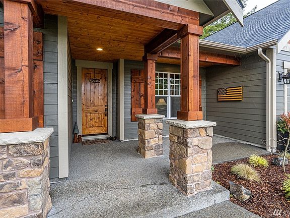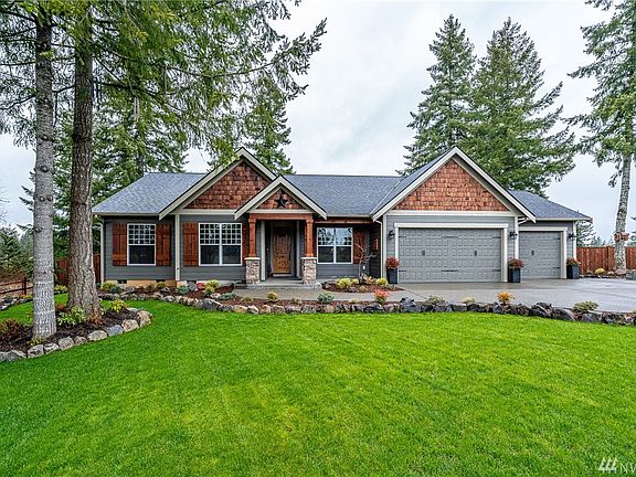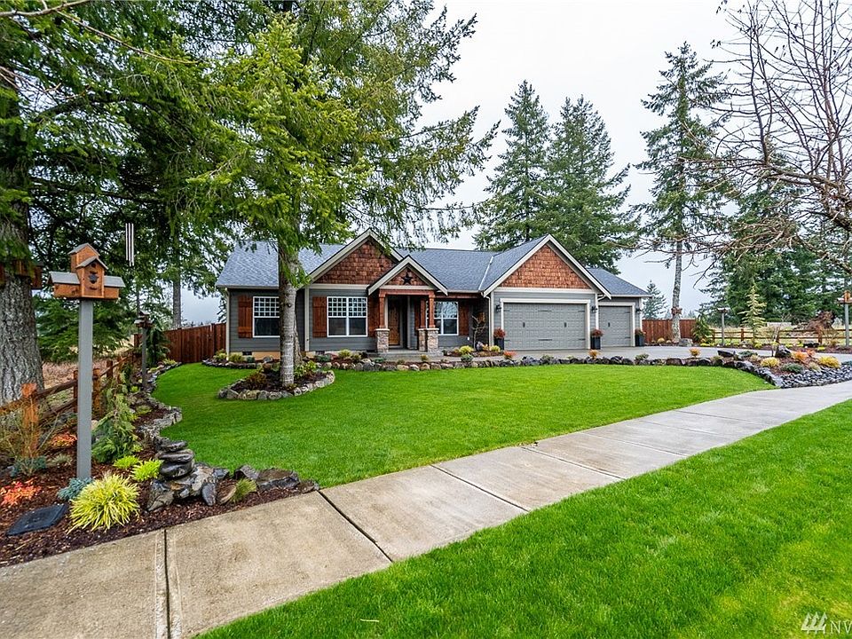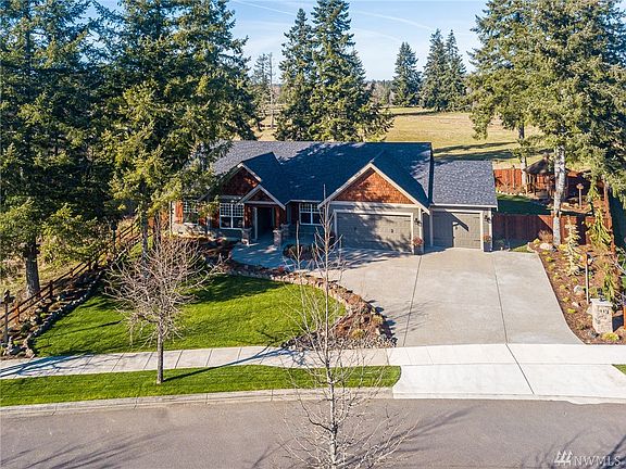 Absolutely beautiful new home in gated rural community. Quality materials. Hardiplank siding, stone & cedar accenting, cedar exterior trim, 40-year roof. Wainscoting, ceiling accents, slab granite counters, and high-quality fixtures. Spacious master with walk-in tile shower and large walk in closet. 10' ceilings and 8' doors. Covered front porch & back patio. Back yard fully fenced, artfully landscaped has fantastic gazebo with peekaboo view of Mt Rainier. Fiber optics for high speed internet.