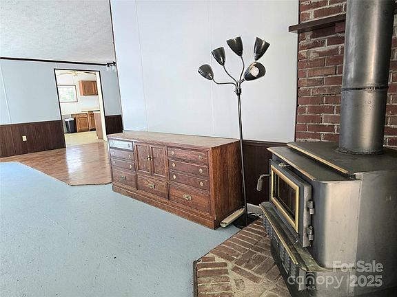 Inside, the open floor plan includes a warm living and dining area anchored by a wood-burning stove, a large kitchen with plenty of countertop space, and a laundry room with cabinets. A convenient doggy door is already installed off the laundry room, making it easy for pets to enjoy the backyard. The primary suite features his-and-hers closets, a soaking tub, and a stand-up shower, while two additional bedrooms and a full bath complete the layout. Some rooms feature durable epoxy-painted floors.