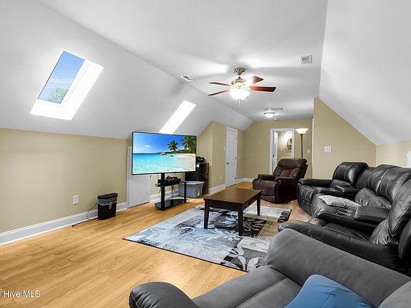 The primary suite is a spacious retreat at 15' x 17', with an 11' x 11' bath featuring dual vanities, a walk-in shower, a jacuzzi tub, and a 10' x 10' walk-in closet. Additional highlights include a screened porch with deck area (gas grill conveys), a wrought iron fenced backyard with sprinkler system for easy upkeep, a bonus room with skylights, walk-in closet, and full bath, plus a floored attic for extra storage.