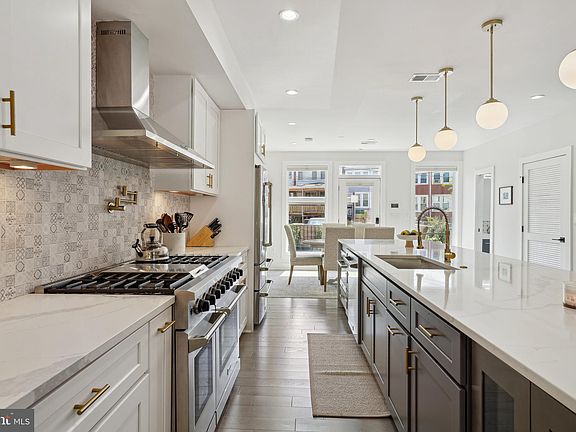 Introducing 113 Rhode Island Ave NE, a stunning row home nestled in the heart of desirable Eckington. Step into the main level, artfully designed for modern living and entertaining. A gourmet kitchen steals the spotlight, equipped with a 48” gas range, luxury quartz countertops, and an expansive island with a built-in wine cooler. Flooded with natural light, the open concept flows seamlessly into the dining area and beyond, leading to a spacious deck and an expansive backyard, perfect for gatherings or quiet retreats. On the upper level you will find three generous-sized bedrooms and two full bathrooms. The owner’s suite indulges with soaring ceilings, dual closets, and a lavish owner’s bath. The downstairs apartment is separately metered with a certificate of occupancy. Complete with kitchen, two bedrooms, two bathrooms, and private washer and dryer. It was last rented for $2300 but recent comps suggest $2500-$2700. Convenience is key, with two off-street parking spaces. Nestled between Bloomingdale, Eckington, and Brookland, enjoy easy access to shops, restaurants, and the Rhode Island Metro Station, all just minutes away. This property leaves no detail overlooked, presenting an exceptional opportunity for stylish living in the heart of Washington DC.