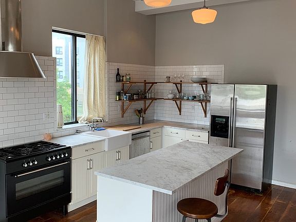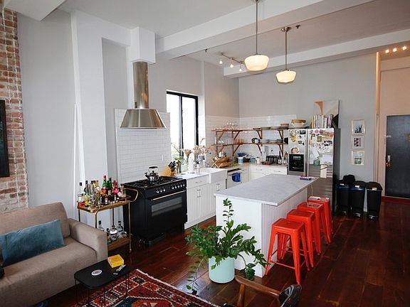 Lofty and bright with high ceilings, chef's kitchen, 2 full bathrooms, balcony, and laundry in unit. Prime location just 2 blocks to McCarren Park and close to the Lorimer L & G trains. Primary bedrooms is 9' x 14' & smaller bedroom is 9' x 10' No fee!