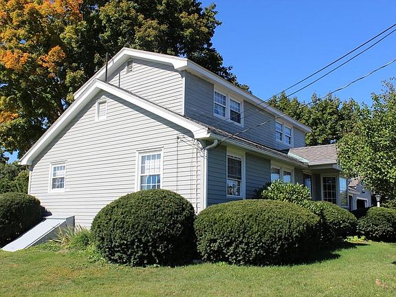 Conveniently located with easy access to both I-91 and Route 116. This 4 bedroom home has 2 bedrooms on the first floor, as well as an office/den, first floor bathroom and laundry. The 2nd floor offers 2 large bedrooms and a 1/2 bath. Lovely back yard with mature trees, scenic views of surrounding farm land and mountains. There is a large entry room with fireplace and pellet insert. There is a barn/garage/workshop in back as well as a covered patio for entertaining. A full basement, attached single car garage and new septic system complete the package. Available immediately.